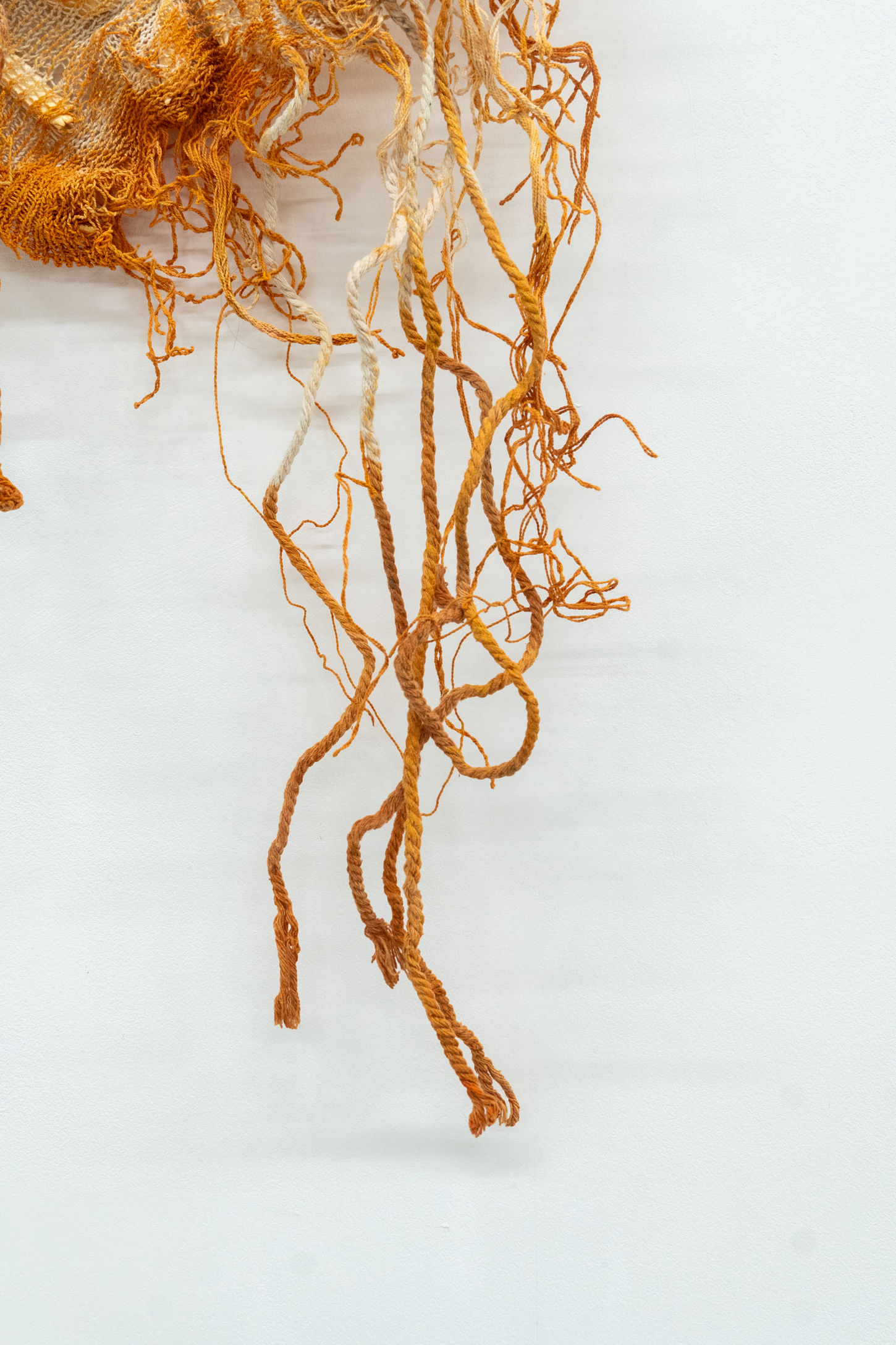 Crab shells, ropes(used in the tying of live crabs), hand-spun cotton yarn, plant-dyed