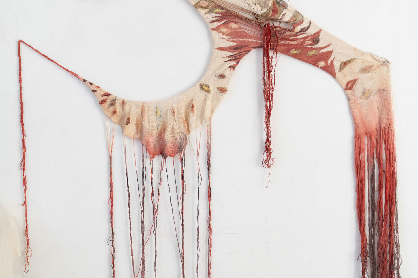 It embodies a physical representation of the mother figure and reflects my fear of maternal control, of becoming a mother, and of emotional inheritance. The piece must be physically stretched to exist, mirroring the overwhelming burden my mother carried within a fractured family structure.